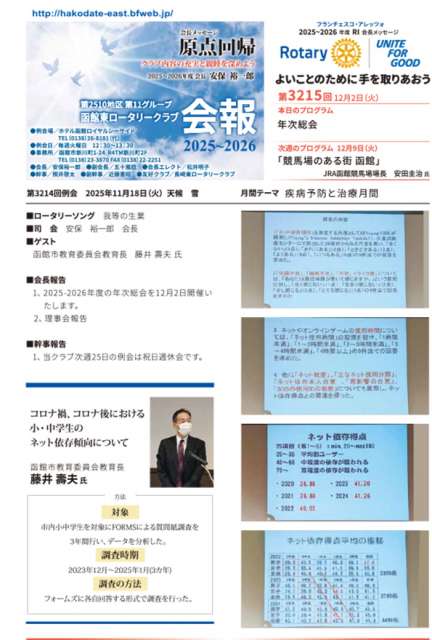2、他クラブ例会変更 10月30日函館RC自主休会