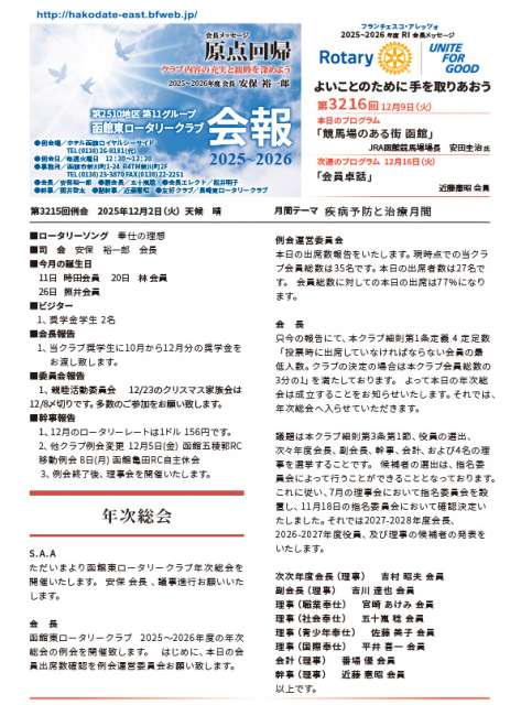 1、2025-2026年度の年次総会を12月2日開催いたします。